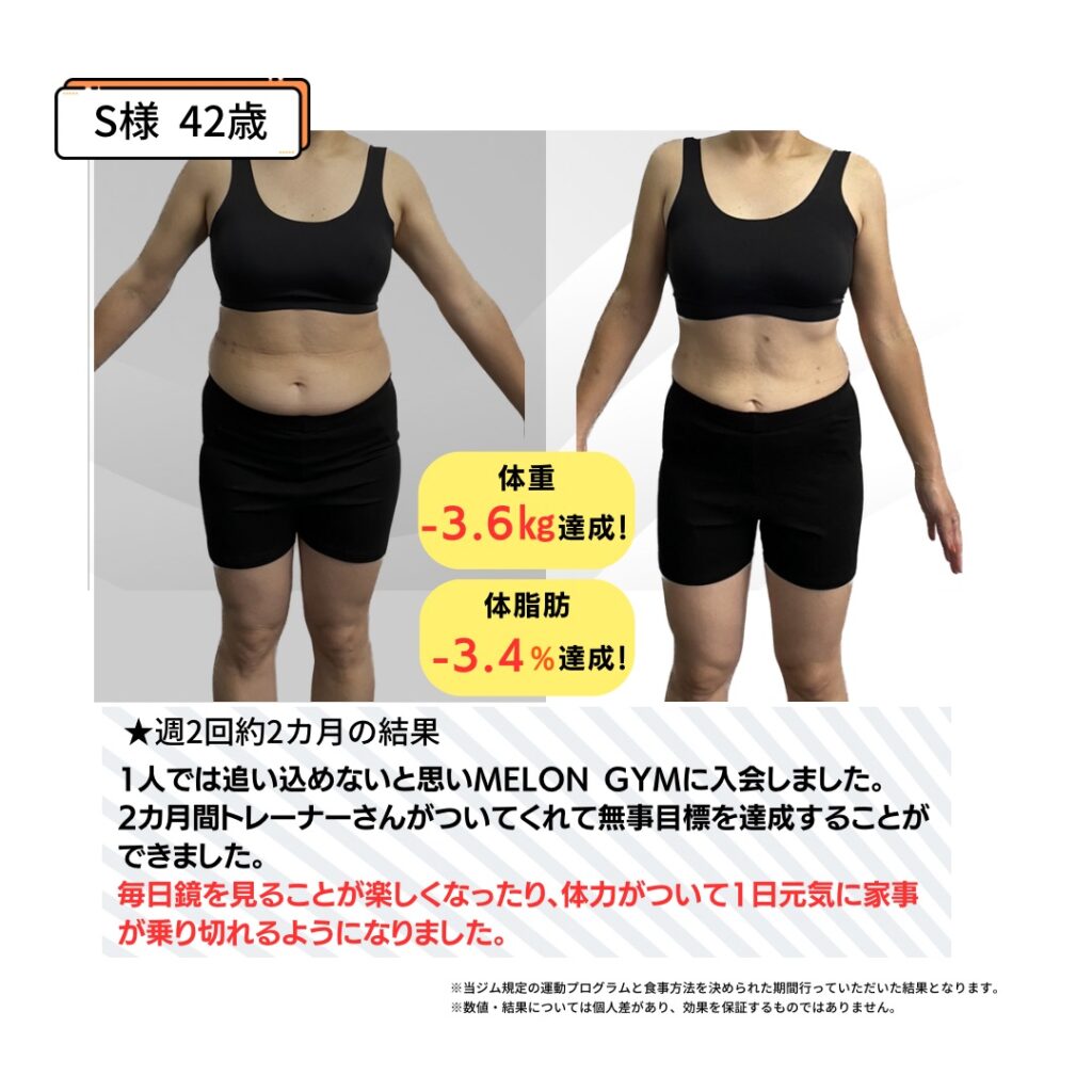 1人では痩せることができなかったけど、MELON GYMに通い始めて2ヶ月で−5キロのダイエットに成功しました。